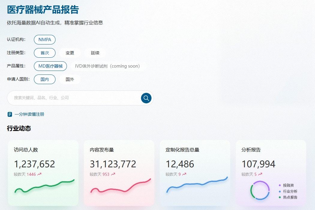 医疗器械产品注册查询链接:https://cro.mdivd.com/product-report/index.html#/introduction?token=